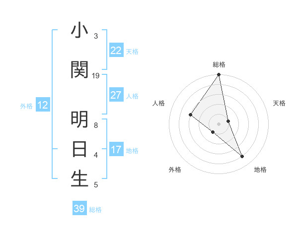 小関 明日生さんの総格は39画の5点!