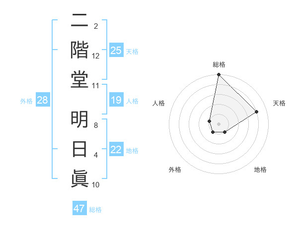二階堂 明日眞さんを姓名の画数から五運を鑑定