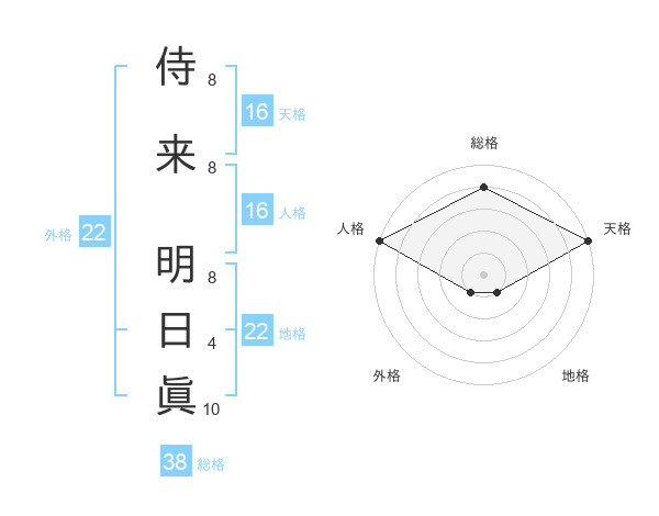 侍来 明日眞さんの総格は38画の4点!