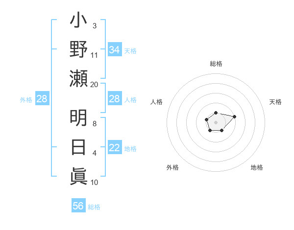 小野瀬 明日眞さんを姓名の画数から五運を鑑定