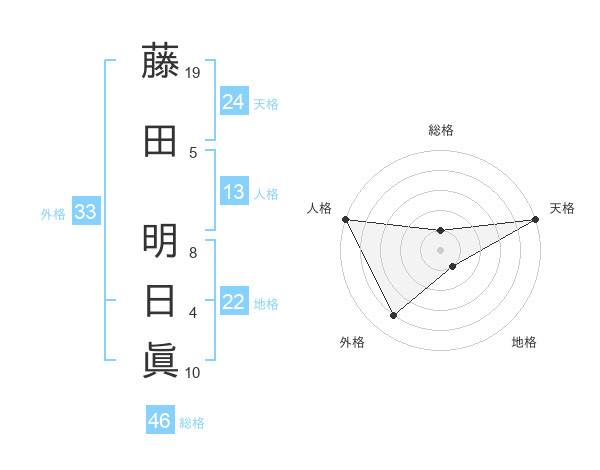 藤田 明日眞さんの天格は24画の5点!