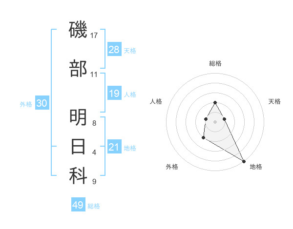 磯部 明日科さんを姓名の画数から五運を鑑定
