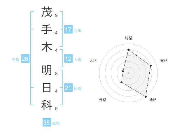 茂手木 明日科さんの天格は17画の4点!