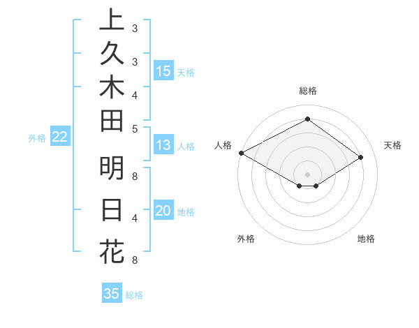 上久木田 明日花さんの総格は35画の4点!