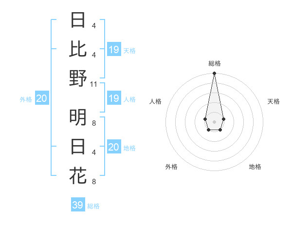 日比野 明日花さんを姓名の画数から五運を鑑定