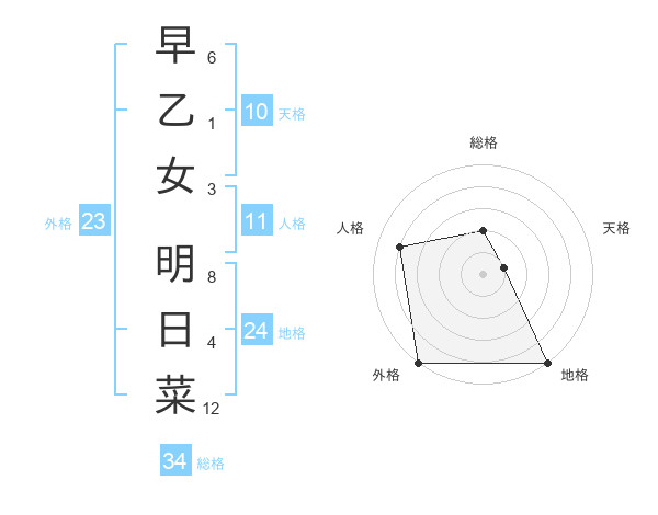早乙女 明日菜さんを姓名の画数から五運を鑑定