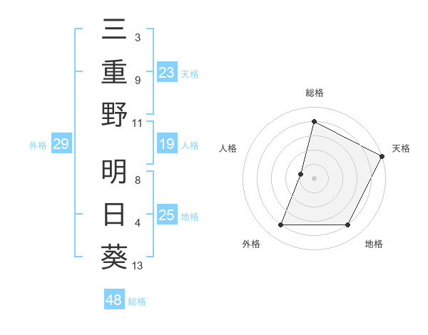 三重野 明日葵さんの外格は29画の4点!