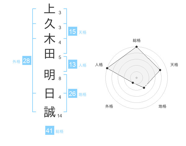 上久木田 明日誠さんを姓名の画数から五運を鑑定