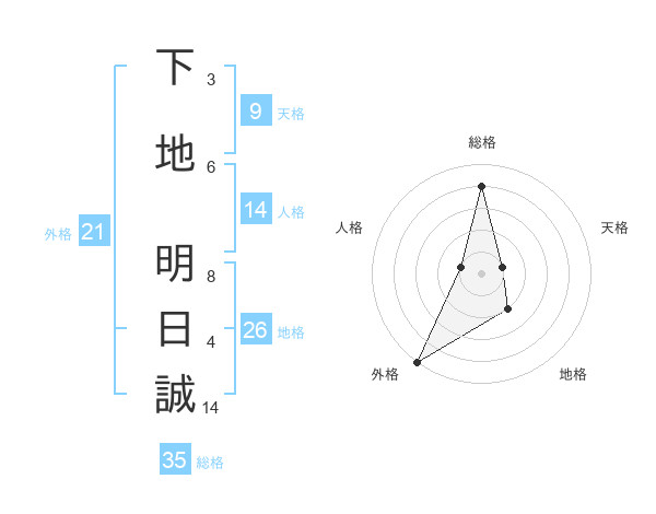 下地 明日誠さんの総格は35画の4点!
