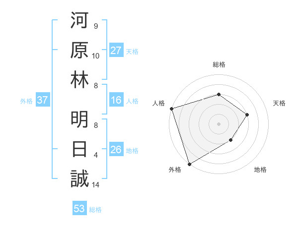 河原林 明日誠さんを姓名の画数から五運を鑑定