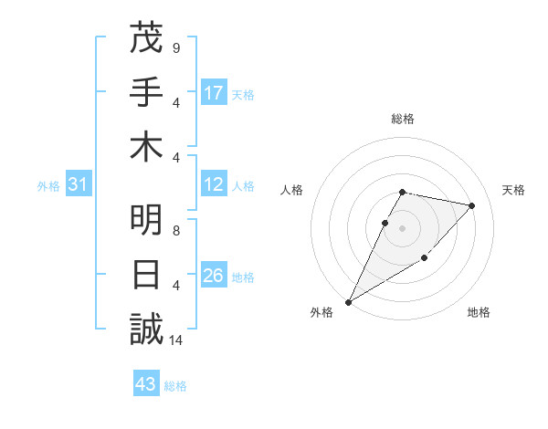 茂手木 明日誠さんを姓名の画数から五運を鑑定