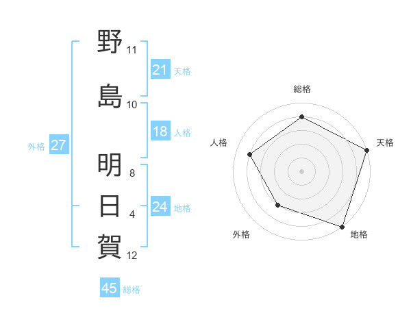 野島 明日賀さんの総格は45画の4点!