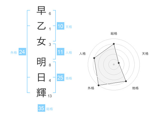 早乙女 明日輝さんを姓名の画数から五運を鑑定
