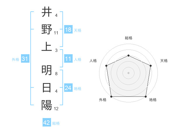 井野上 明日陽さんを姓名の画数から五運を鑑定
