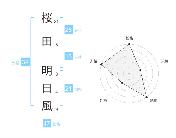 桜田 明日風さんを姓名の画数から五運を鑑定