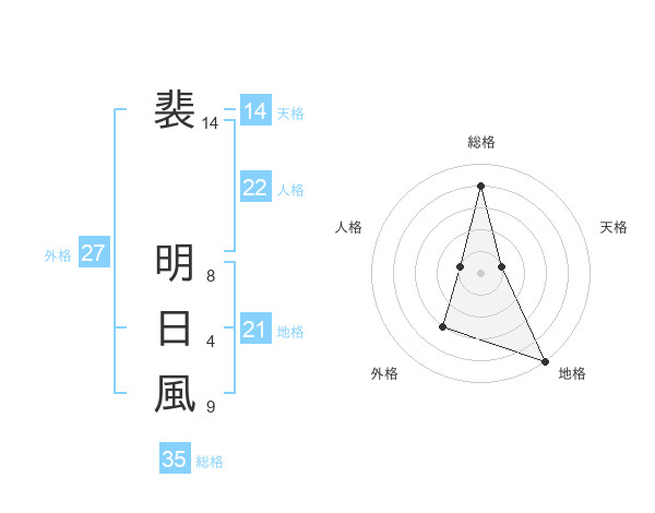裴 明日風さんの総格は35画の4点!