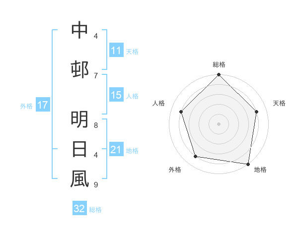 中邨 明日風さんを姓名の画数から五運を鑑定