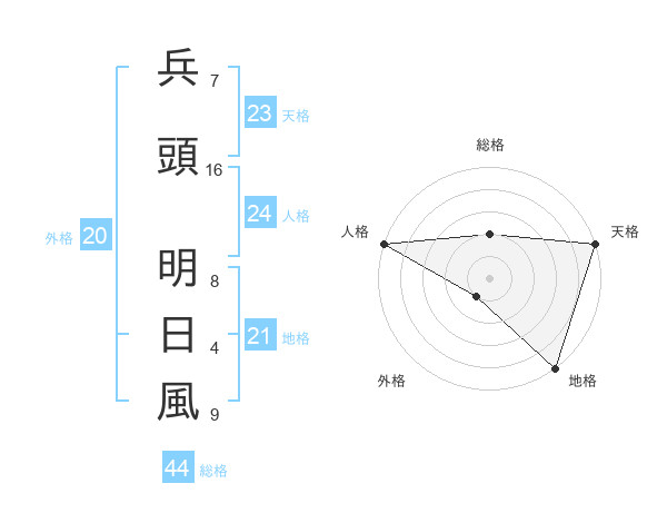 兵頭 明日風さんを姓名の画数から五運を鑑定