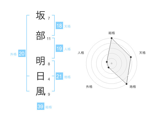 坂部 明日風さんを姓名の画数から五運を鑑定