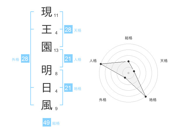 現王園 明日風さんの人格は21画の5点!