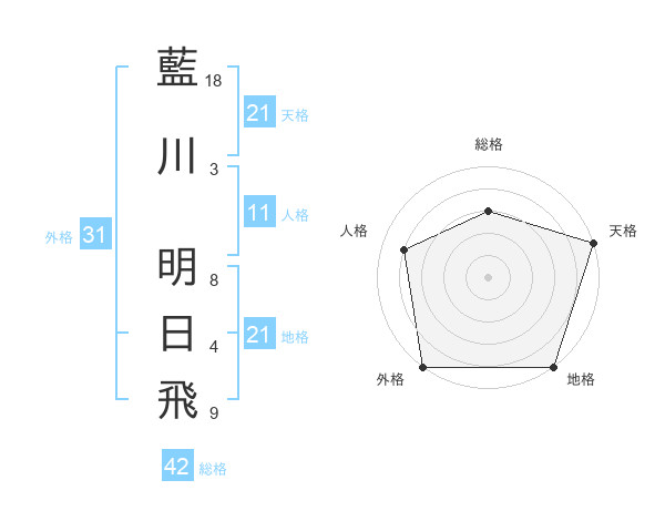 藍川 明日飛さんの天格は21画の5点!
