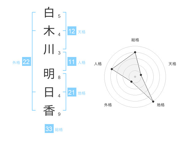 白木川 明日香さんの総格は33画の4点!