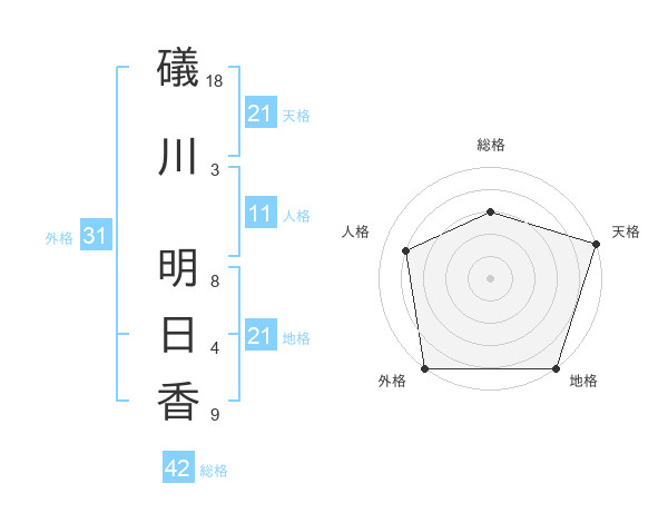 礒川 明日香さんを姓名の画数から五運を鑑定