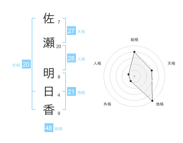 佐瀬 明日香さんを姓名の画数から五運を鑑定
