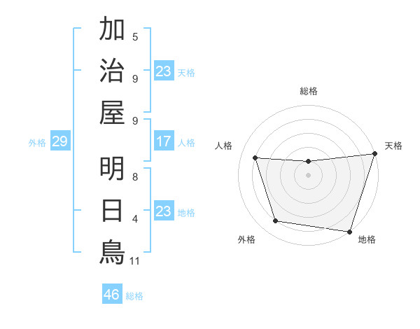 加治屋 明日鳥さんの天格は23画の5点