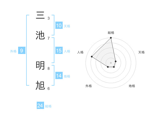 三池 明旭さんの総格は24画の5点!