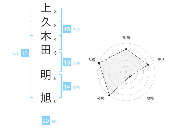 上久木田 明旭さんを姓名の画数から五運を鑑定