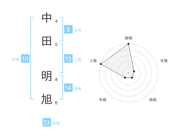 中田 明旭さんの総格は23画の5点!