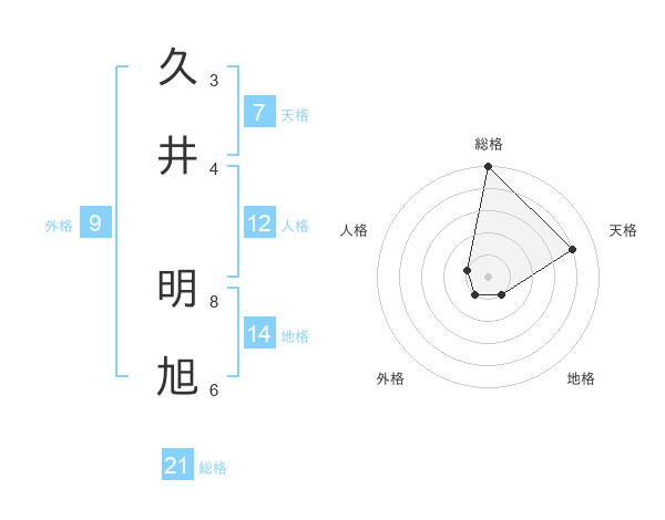 久井 明旭さんの総格は21画の5点!