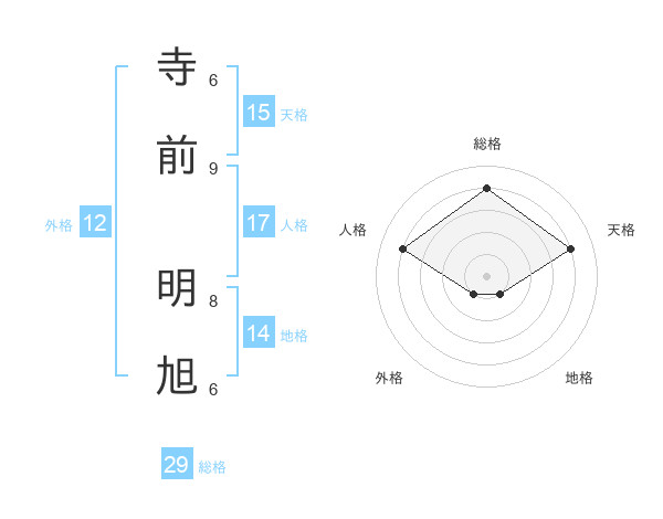 寺前 明旭さんの総格は29画の4点!