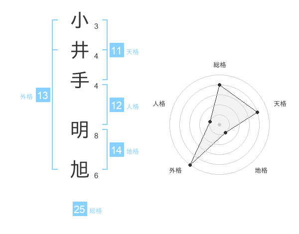 小井手 明旭さんの外格は13画の5点!
