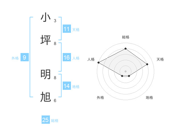 小坪 明旭さんの総格は25画の4点!