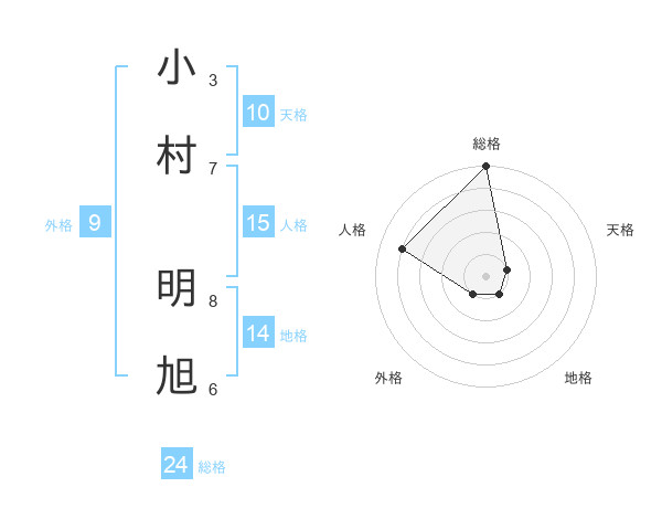 小村 明旭さんの総格は24画の5点!