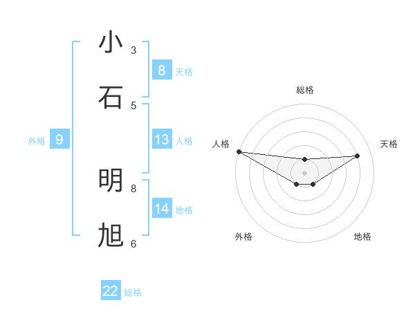 小石 明旭さんの総格は22画の1点!