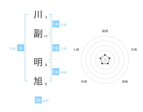 川副 明旭さんの天格は14画の1点!