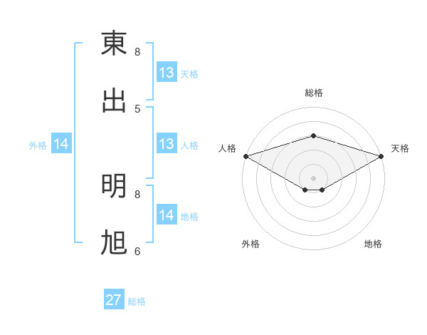 東出 明旭さんの天格は13画の5点!