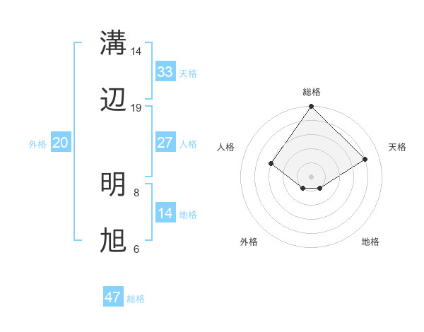 溝辺 明旭さんの総格は47画の5点!