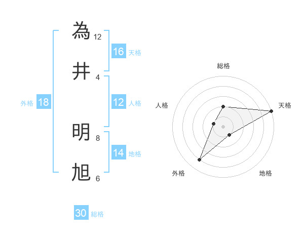 為井 明旭さんの天格は16画の5点!