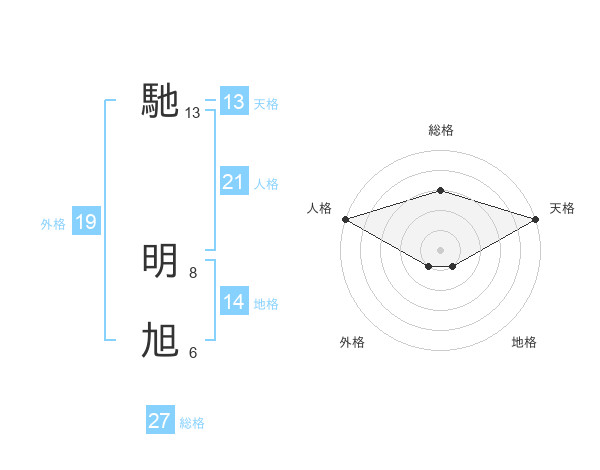馳 明旭さんの天格は13画の5点!