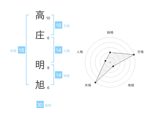 高庄 明旭さんの天格は16画の5点!