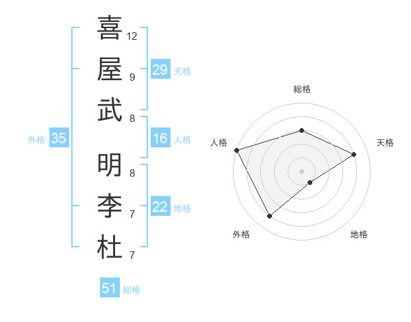 喜屋武 明李杜さんを姓名の画数から五運を鑑定