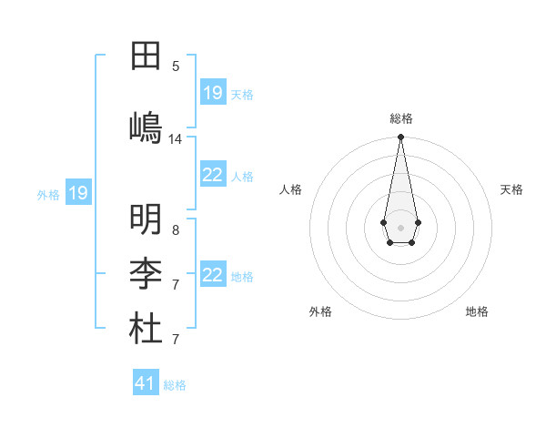 田嶋 明李杜さんを姓名の画数から五運を鑑定