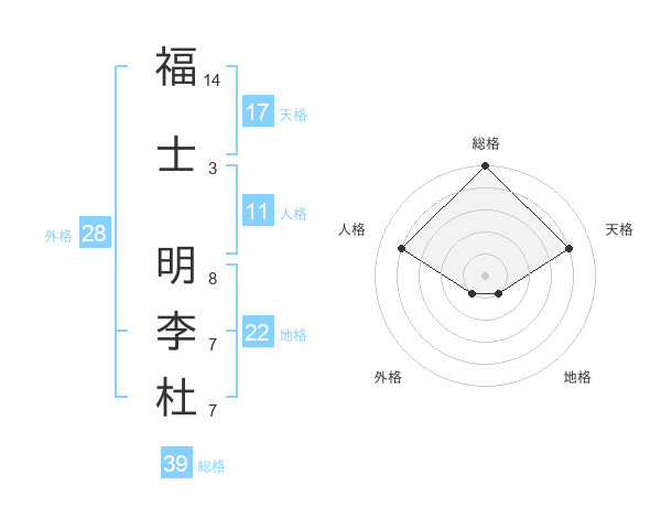 福士 明李杜さんの天格は17画の4点!