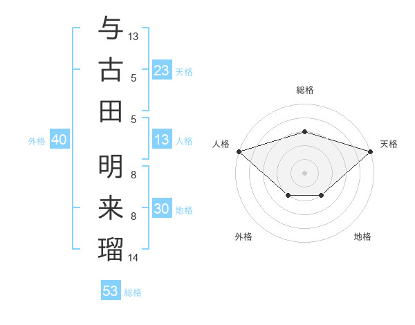 与古田 明来瑠さんの天格は23画の5点