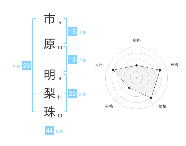 市原 明梨珠さんを姓名の画数から五運を鑑定