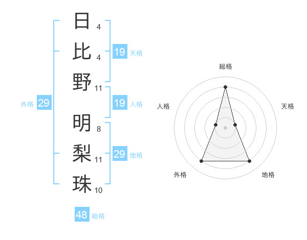 日比野 明梨珠さんを姓名の画数から五運を鑑定
